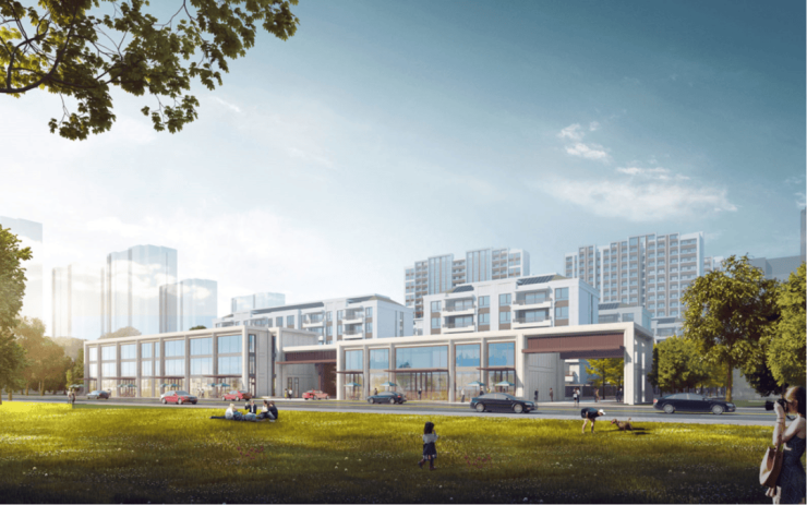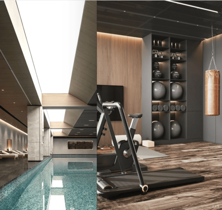 其次,项目南侧临近永泰路的地方,打造了2栋社区配套建筑,将用作社区食堂、恒温泳池、健身房等,服务于社区的同时有效阻隔道路噪音。